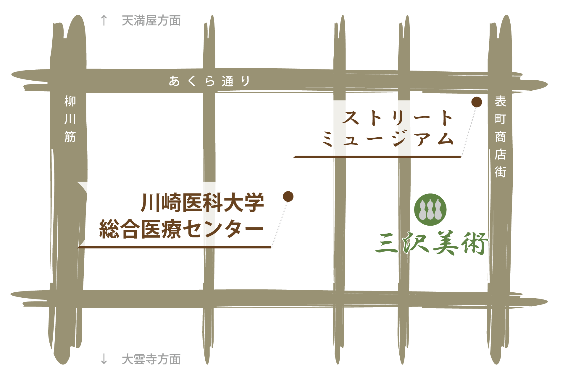 表町アーケード街の西隣の筋、岡山浜作さんより南へ6軒隣り。大きな備前焼の三石甕が目印です。