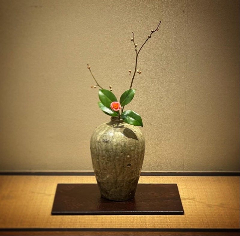鎌倉から室町中期にかけて 中国の梅瓶(メイピン)を写し作られた。 花が映ります。