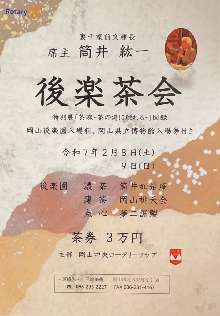 裏千家前文庫長 席主 筒井紘一を始めとした「後楽茶会」を開催いたします。